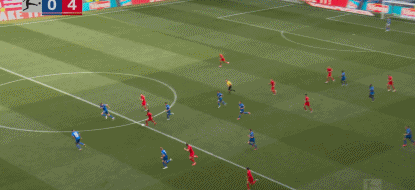 第53分鐘,奧利塞穿襠斜塞,基米希小禁區(qū)線前起腳折射破門(mén),拜仁2-0