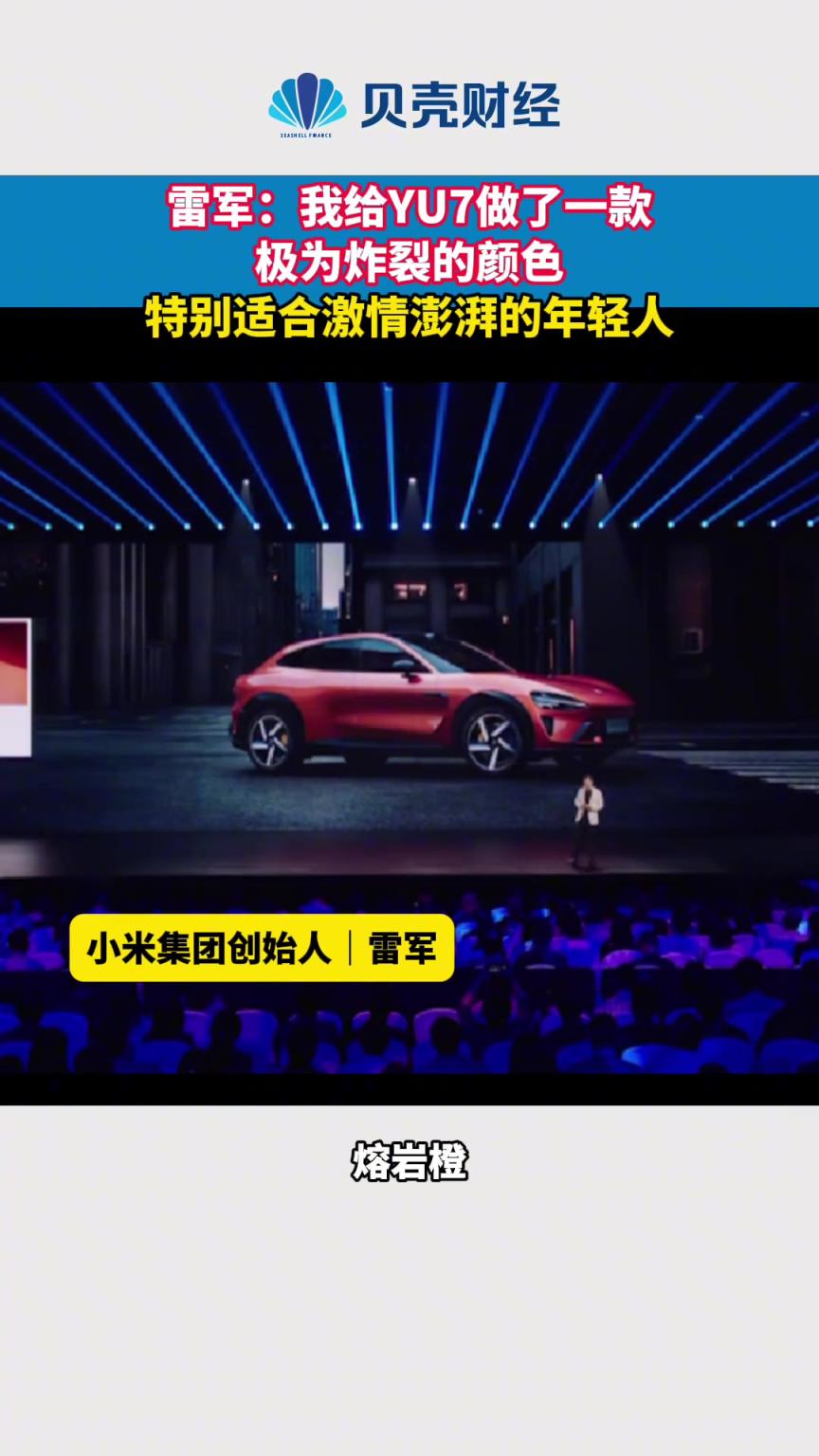為您提供精彩短視頻《雷軍稱我給YU7做了一款極為炸裂的顏色 特別適合激情澎湃的年輕人》如果您對該比賽精彩視頻回放感興趣,可以收藏并關(guān)注我們。