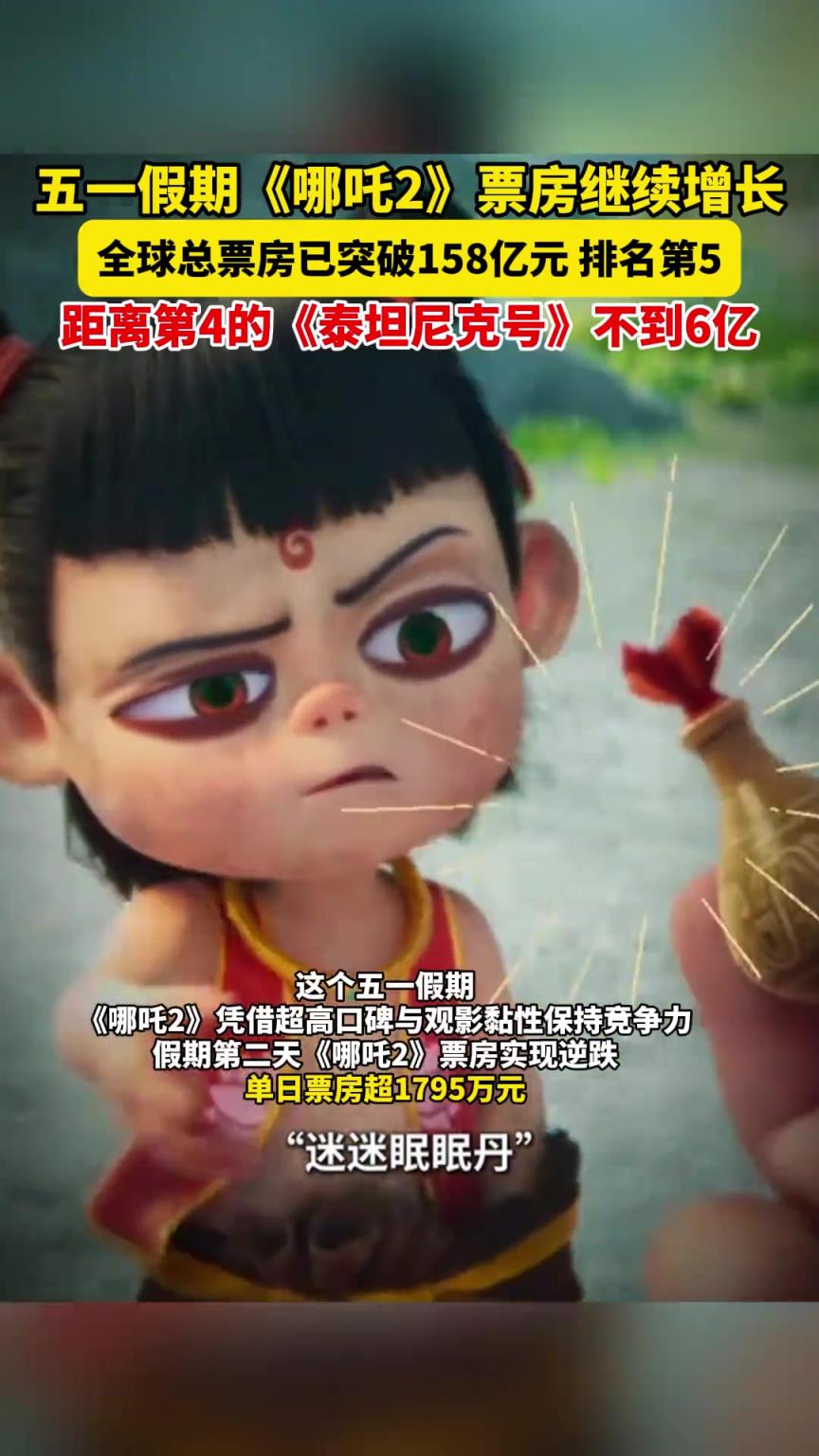 為您提供精彩短視頻《截至5月5日,《哪吒2》總票房突破158億,排名全球影史票房第五》如果您對該比賽精彩視頻回放感興趣,可以收藏并關(guān)注我們。